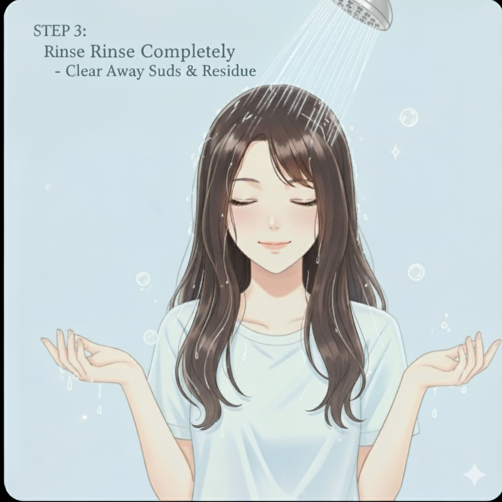 - Rinse hair thoroughly with warm water.