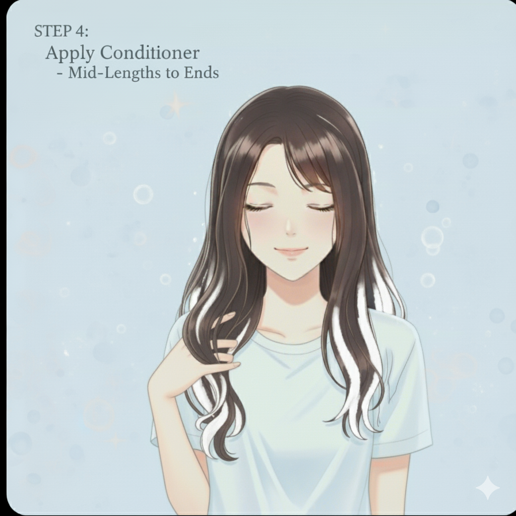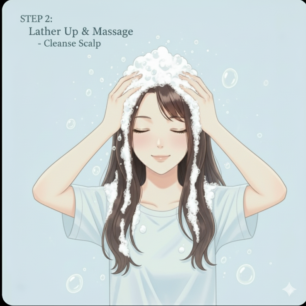 - Lather evenly into scalp and hair strands.
