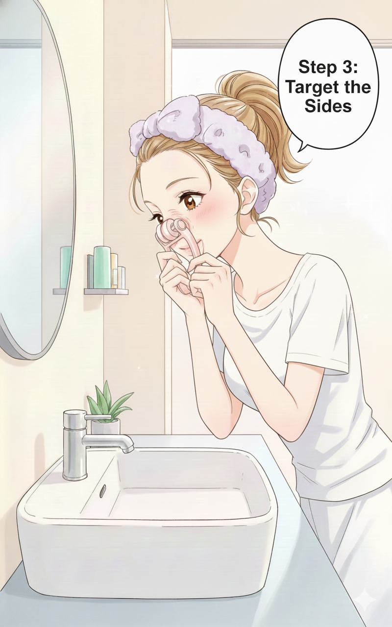 The pinch function applies balanced pressure around the nose bridge and nostrils, while the rolling function softly massages surrounding areas to stimulate circulation and relieve tension. Used consistently, it helps maintain a neat, refreshed look as part of your daily self-care ritual.