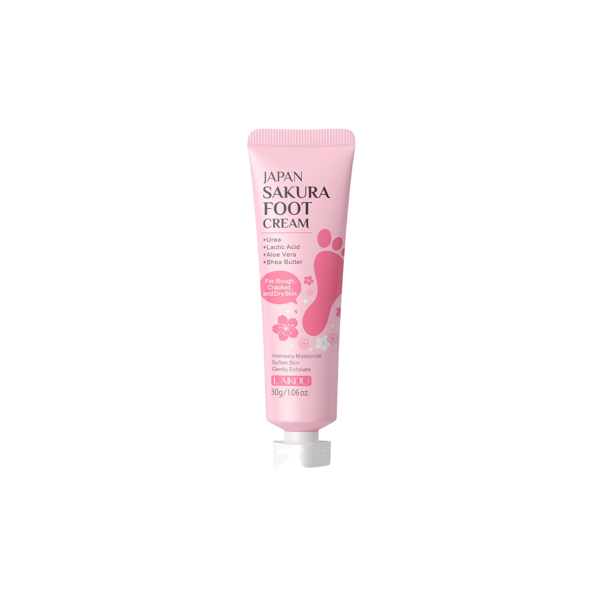 Give your feet a gentle moment of care with LAIKOU Japan Sakura Foot Cream, a soft-touch treatment designed to rejuvenate even the roughest heels. Inspired by the delicate beauty of Japanese cherry blossoms, this cream blends moisturizing urea, gentle exfoliating lactic acid, soothing aloe vera, and nourishing shea butter to bring back comfort, softness and smoothness.
