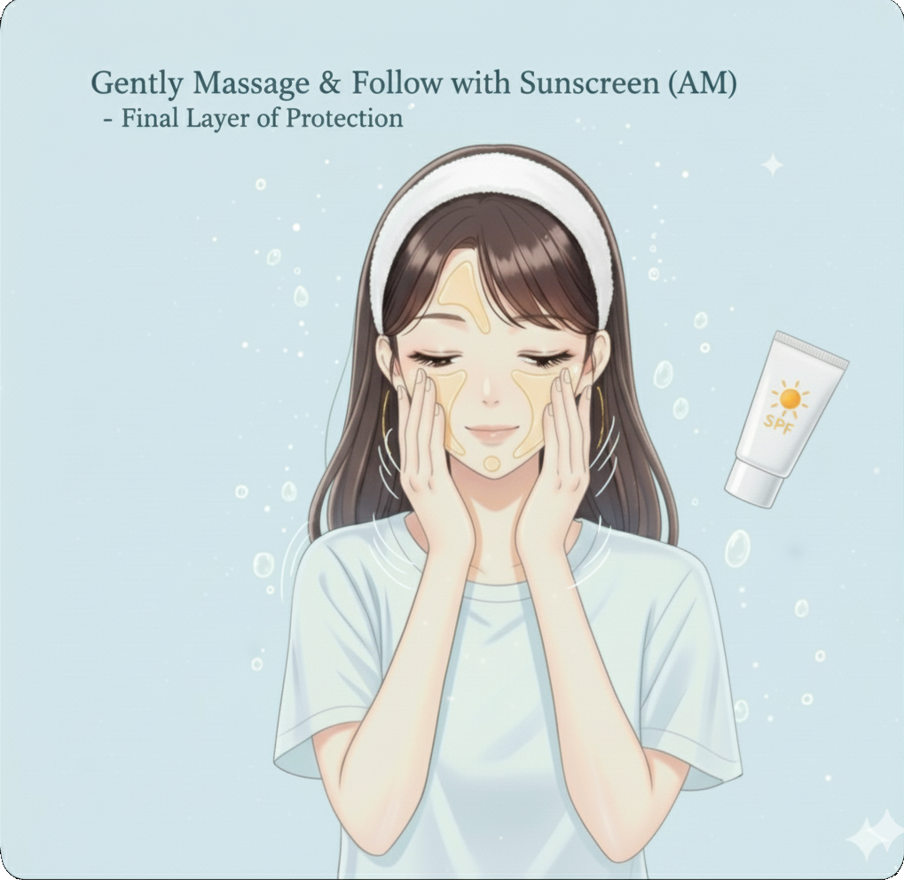 During colder seasons or on dry-skin days, layer an extra drop onto the cheekbones or under-eye area before sleep — you’ll wake up to a soft, luminous complexion.