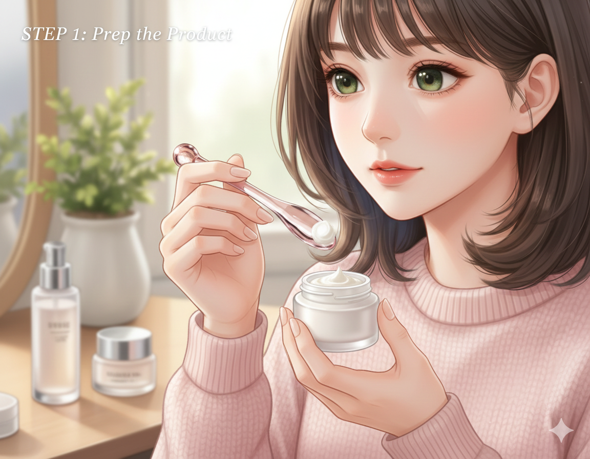 Use this tool anytime you apply creams, balms, serums, eye treatments, or sleeping masks — morning or night.