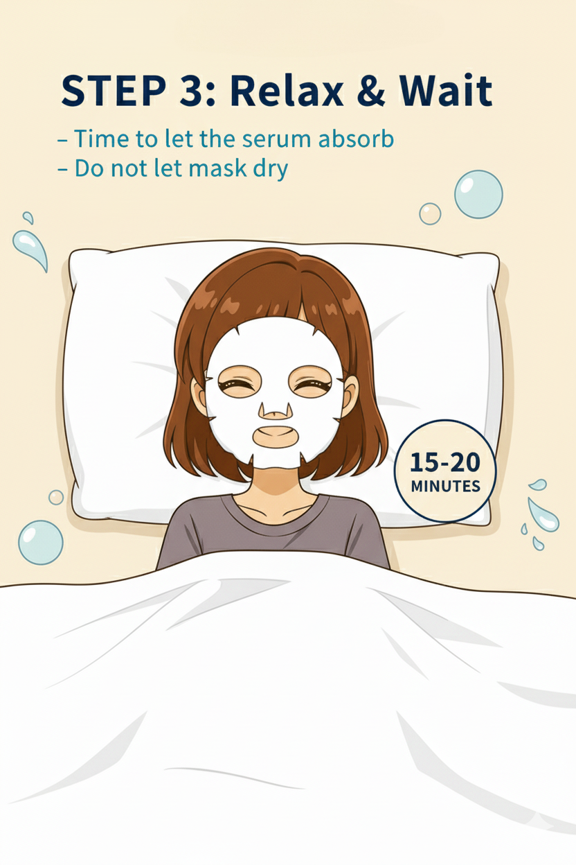 - Leave it on for 10–20 minutes while you relax and let the essence soak in.
