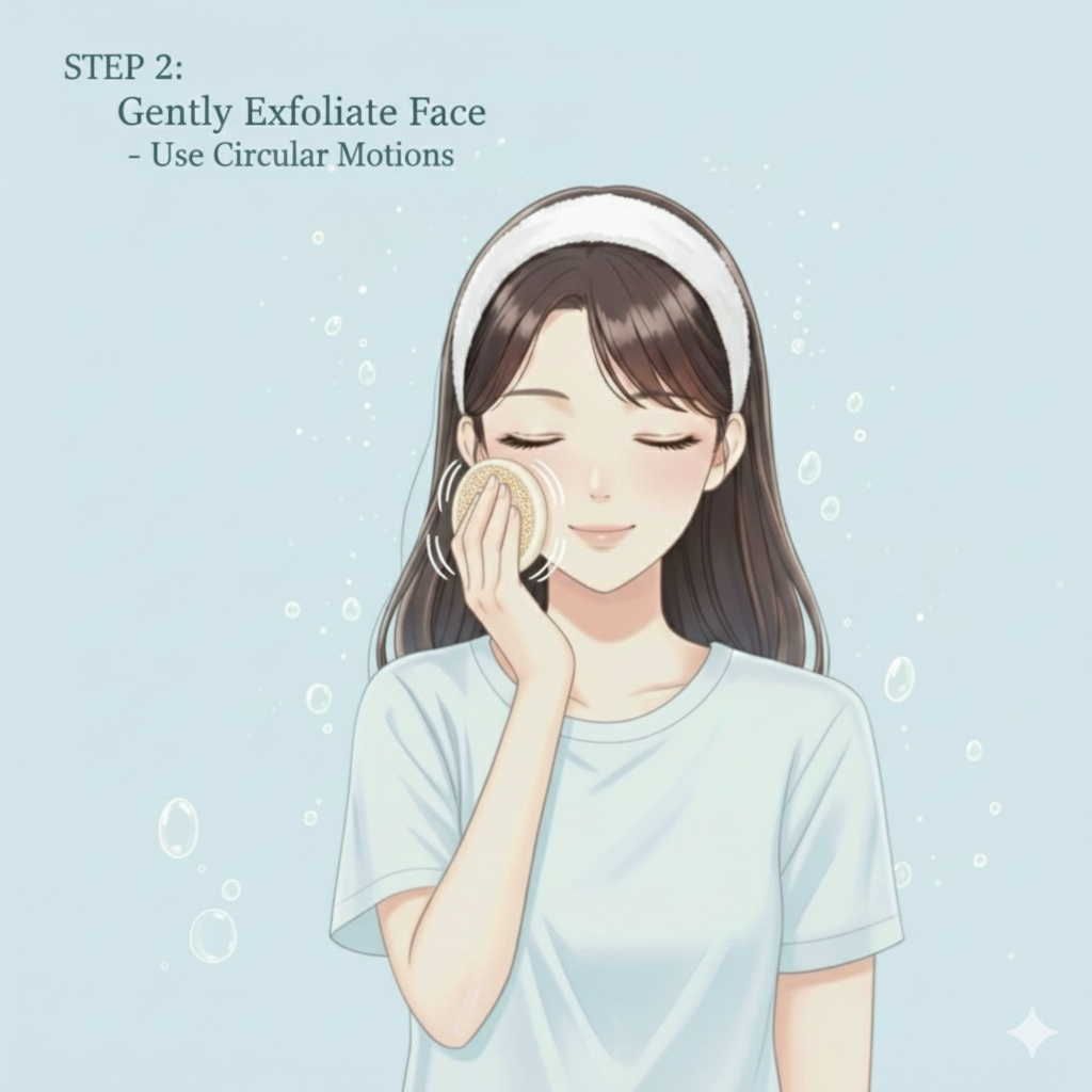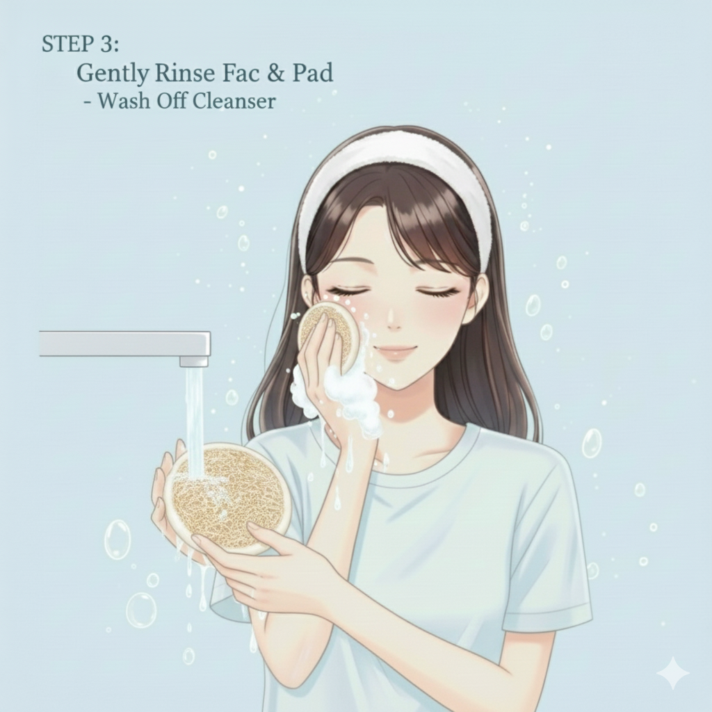 Glide the sponge over the face in light circular motions — especially around areas prone to blackheads or buildup (nose, chin, T-zone). - Rinse & Refresh