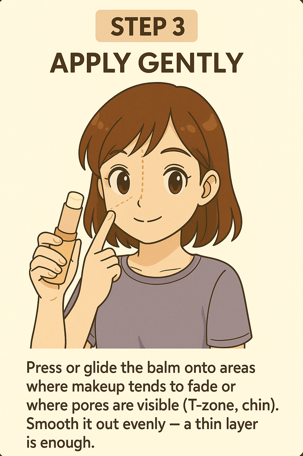 3️⃣ Blend softly with fingertips or a sponge until the texture melts seamlessly into your skin.