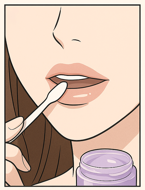 - Use a spatula or fingertip to apply a generous, even layer across your lips.