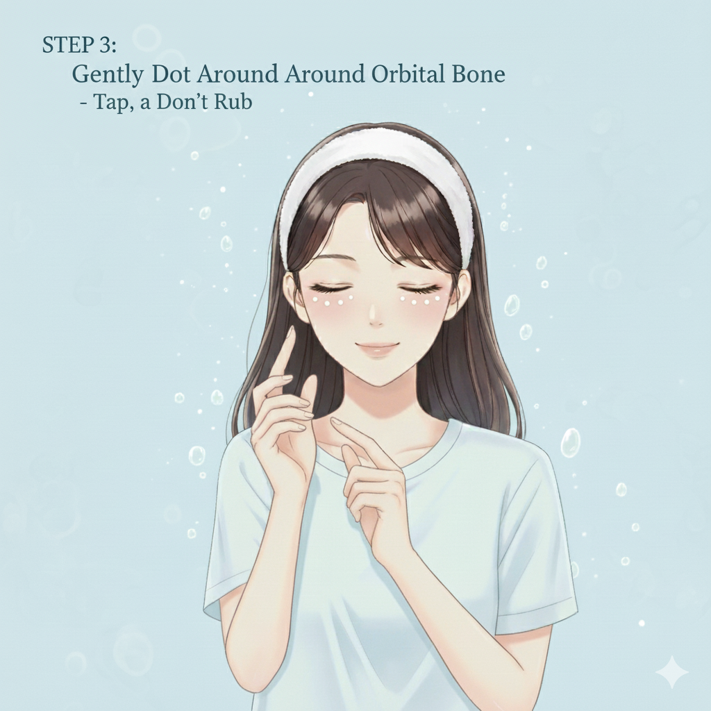 - Gently roll the applicator under each eye from the inner to outer corner.
