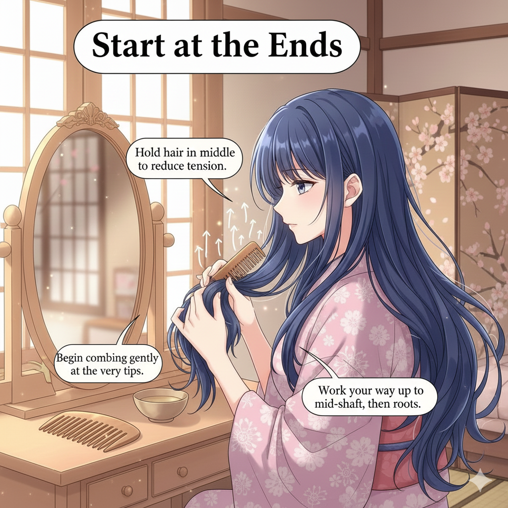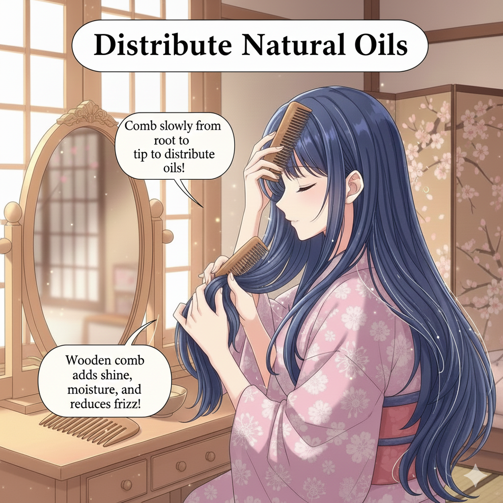 - Apply a drop of natural hair oil (jojoba or argan) before combing for a glossy finish.