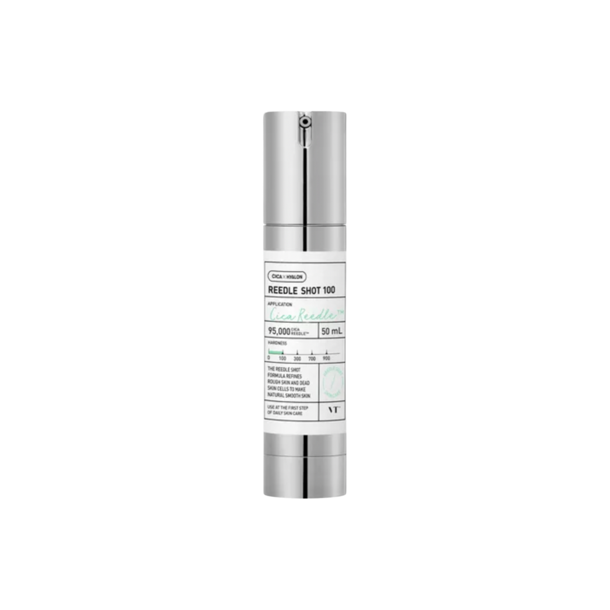 Start with the SKIN1004 Centella Cleansing Oil to melt away sunscreen and impurities, then follow with the VT Cica Reedle Shot 100 for refined texture, minimized pores, and boosted absorption.